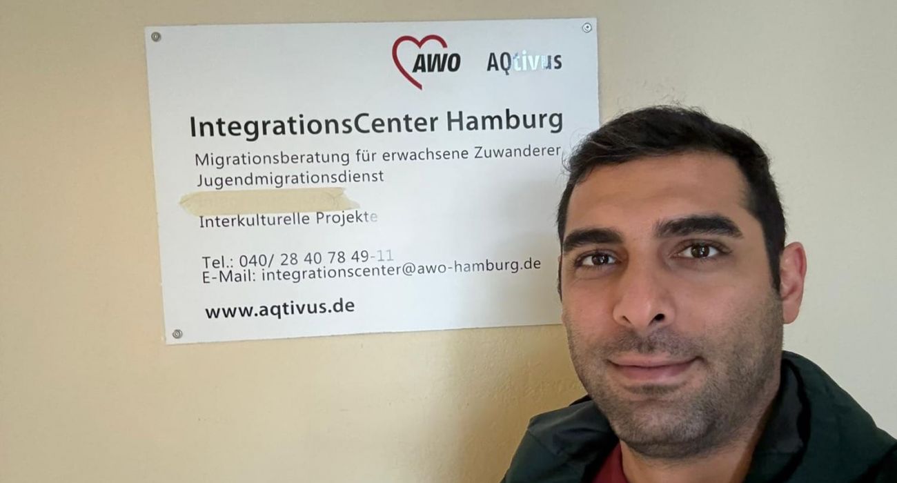"Hallo, ich bin Arian und 29 Jahre alt. Ich habe in Deutschland Asyl beantragt und habe über MITmacher Termine für die Agentur für Arbeit im Hamburg Welcome Center (HWC) und beim AWO AQtivus IntegrationsCente vereinbart, um Beratung zu erhalten.
