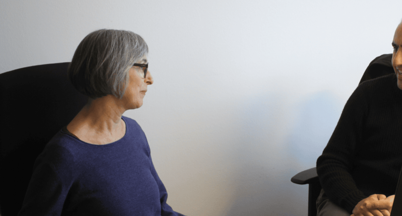 Andrea (l.) und Homayoon (r.) besprechen Andreas neue Aufgaben bei MITmacher