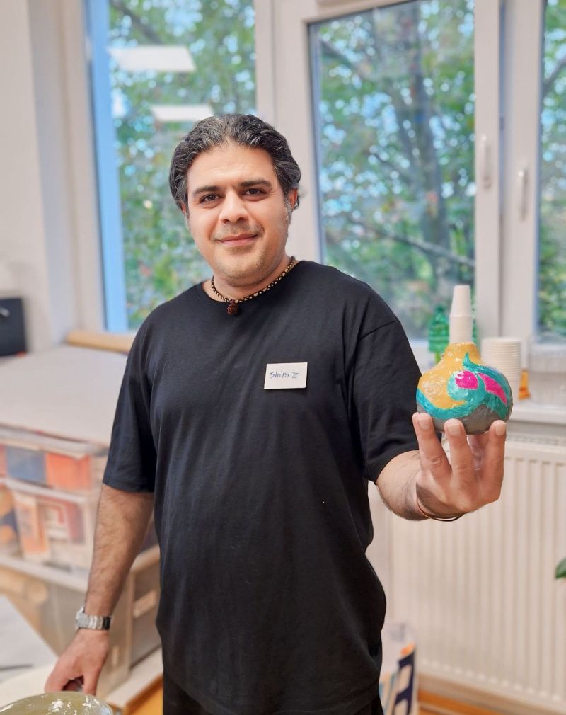 Shiraz, als Leiter des Workshops, erklärte uns geduldig und geschickt die verschiedenen Schritte im Umgang mit Papiermasse. Er achtete auf jeden einzelnen Teilnehmerin und stellte sicher, dass alle den Arbeitsprozess vollständig verstanden und bei Problemen individuell unterstützt wurden. Seine freundliche und unterstützende Art half auch denen, die keine Vorkenntnisse hatten, sich wohlzufühlen und ihre Kreativität ohne Angst vor Fehlern frei auszudrücken.