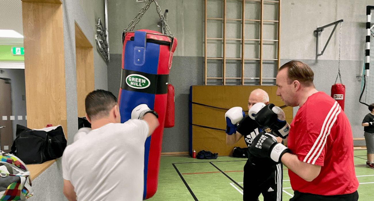 Tadaaa - es dauerte nicht lang, nachdem wir dies im BeratungsgesprÀch erfuhren, schon hatten wir ihn beim TSV Buchholz bei Mahmoud und Lars im Box-Training untergebracht.