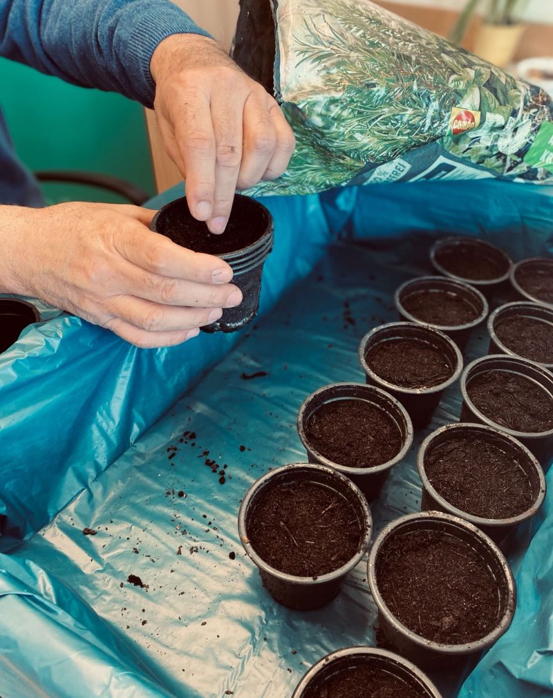 Majid beim Pflanzen säen. Foto: Haus Brügge / Sprungbrett Bergedorf e.V.