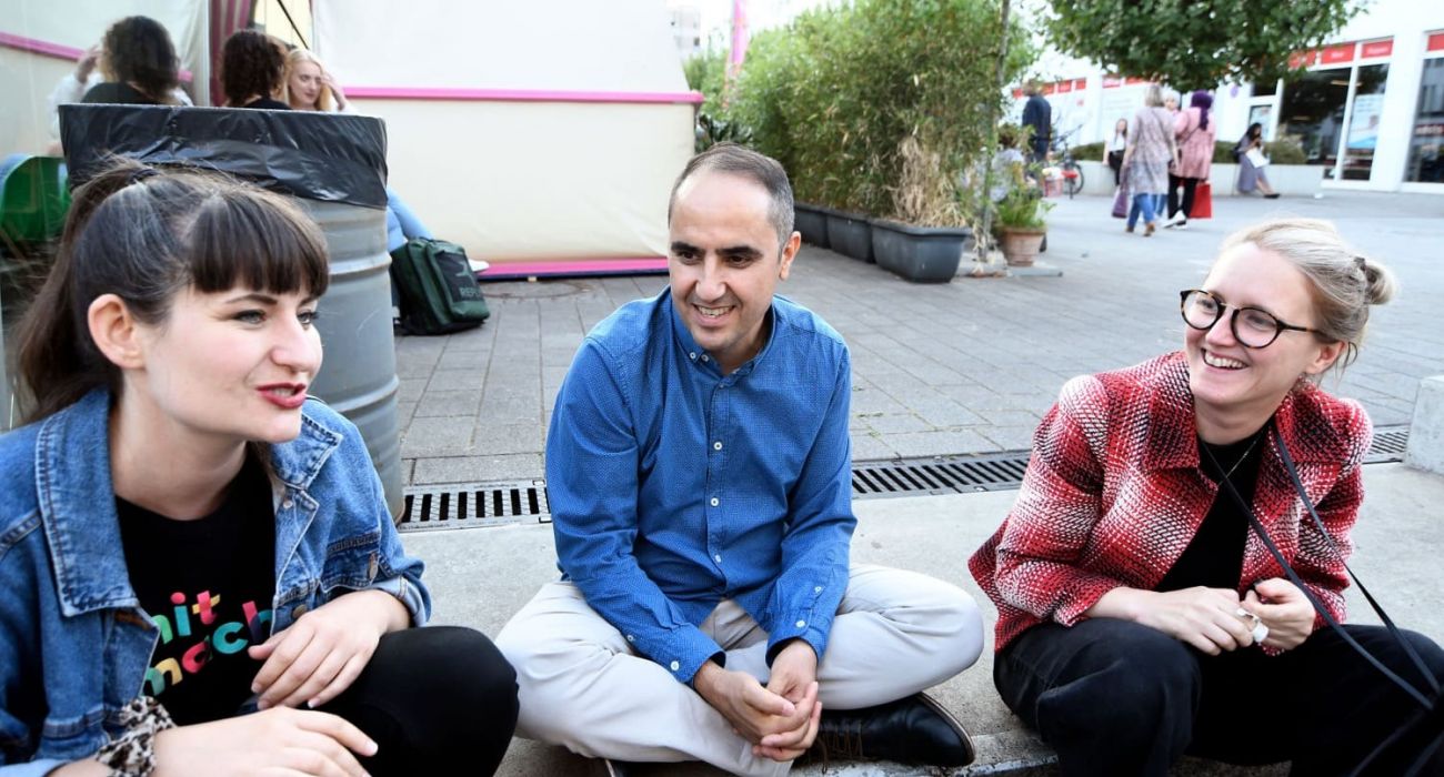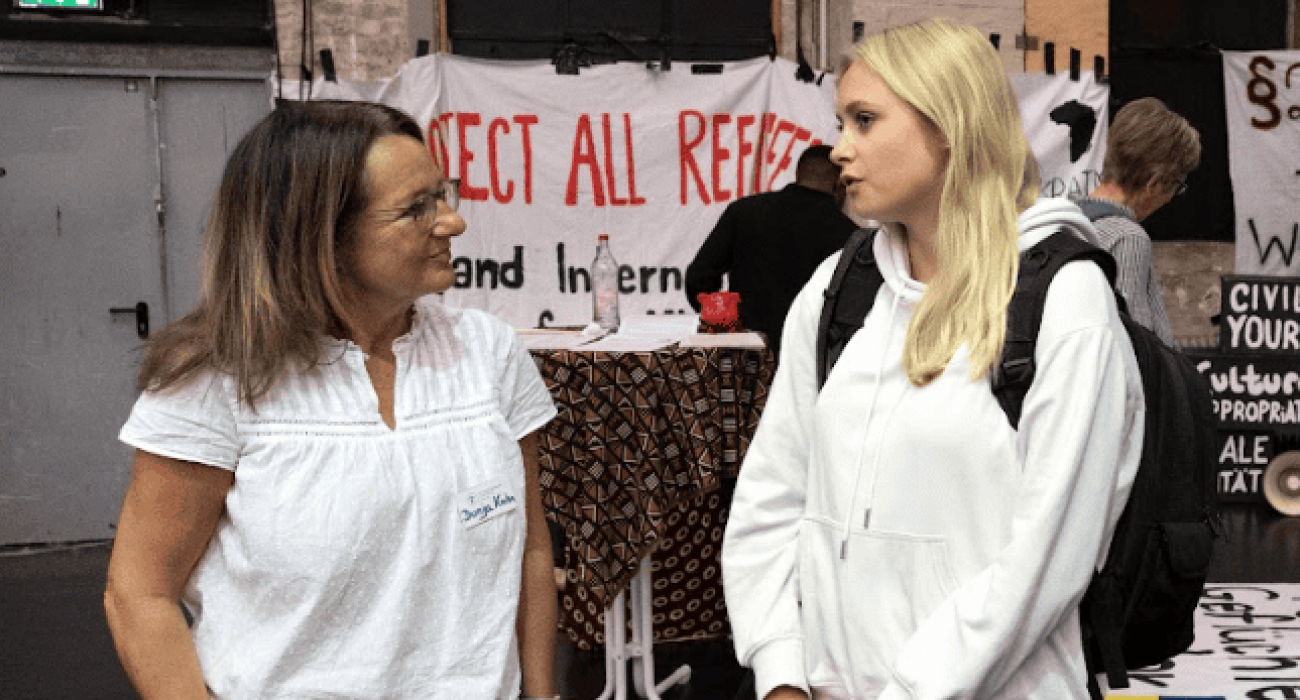 Kollege Homayoon im Gespräch mit Florence Sow vom Bezirksamt Harburg zum Thema Partizipation. Foto: Anne de Wolff