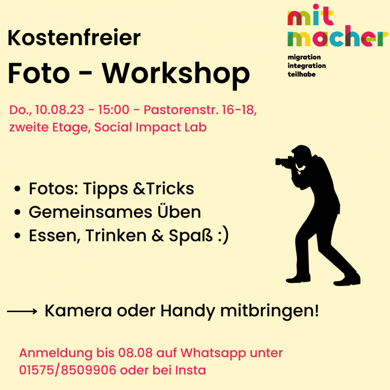 Erster Workshop in der Reihe ist ein Foto-Workshop, den unser ehemaliger Mitmacher Arian umsetzt.