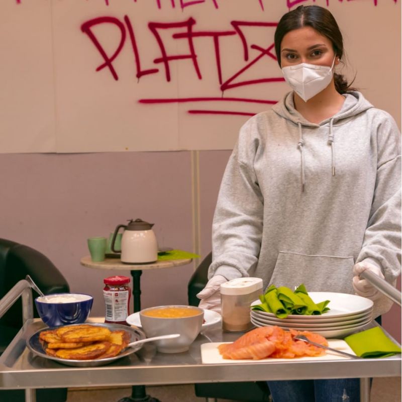 Hallo, ich bin Shaymae, ich bin 18 Jahre alt und komme aus dem Irak. Ich bin seit 2016 in Deutschland und habe in diesem Sommer meinen mittleren Schulabschluss gemacht und mache jetzt eine Ausbildung. Ich habe mich vorher ehrenamtlich bei dem Haus der Jugend (HDJ) Neuwiedenthal engagiert. Als ich da angefangen habe, war ich 17 Jahre. Im Haus der Jugend habe ich den Mitarbeiter*innen geholfen. Egal, was gerade anstand, dabei habe ich sie unterstützt. Wir machten zum Beispiel Essen für die Kinder und Jugendlichen, die dorthin kamen: Pfannengemüse, Sandwiches, Pfannkuchen. Das brachte mir Spaß.