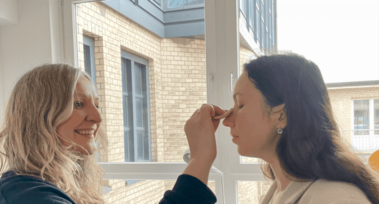 Anne pudert Helen fürs Shooting ©MITmacher