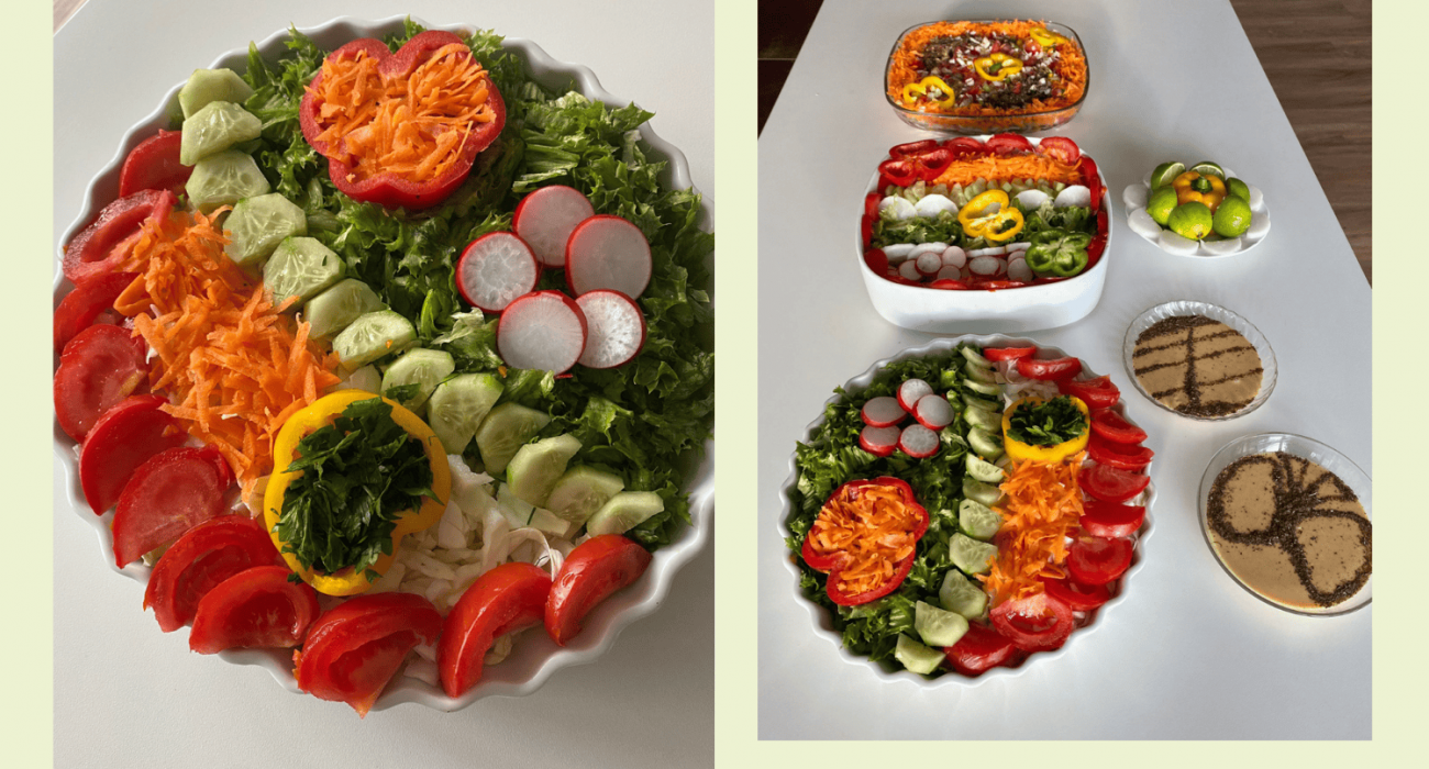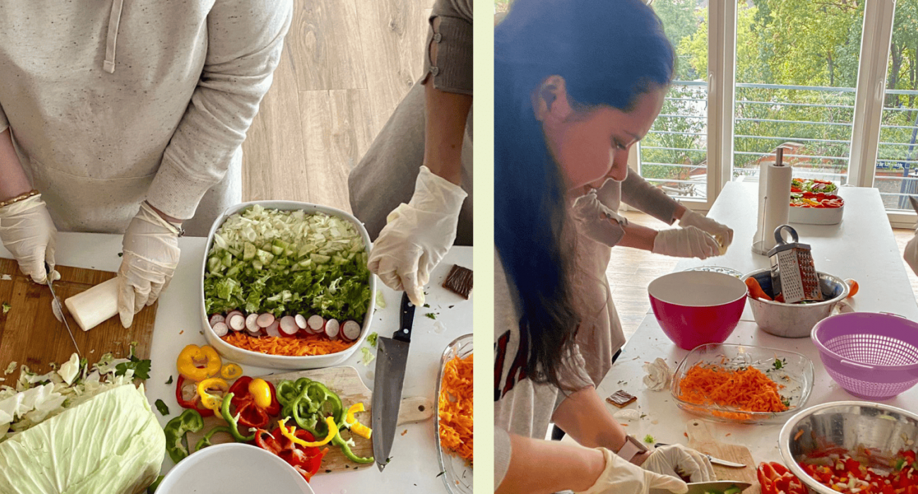 Schon während der Zubereitung sahen unsere Gerichte vielversprechend und lecker aus. Wir haben gemeinsam die Zutaten für unsere leckeren Salate geschnibbelt und diese zubereitet. Wir konnten dabei viele tolle Gespräche führen und dabei gemeinsam etwas über die leckeren Speisen lernen.