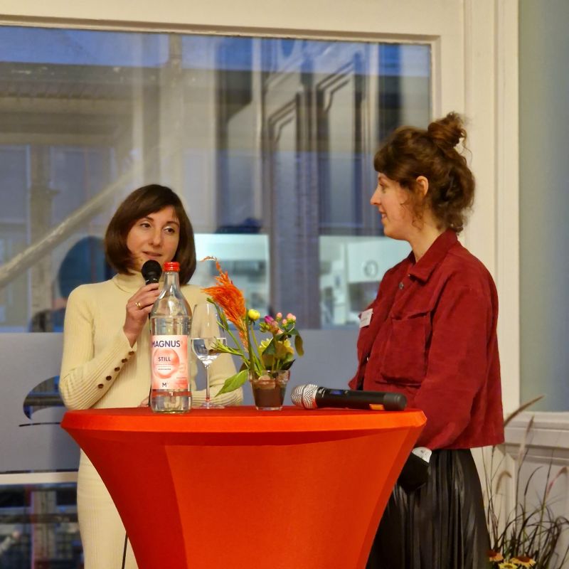Mitmacherin Yuliaa aus der Ukraine (links) teilt ihre Erfahrungen in der BürgerStiftung Hamburg | © Eyhab