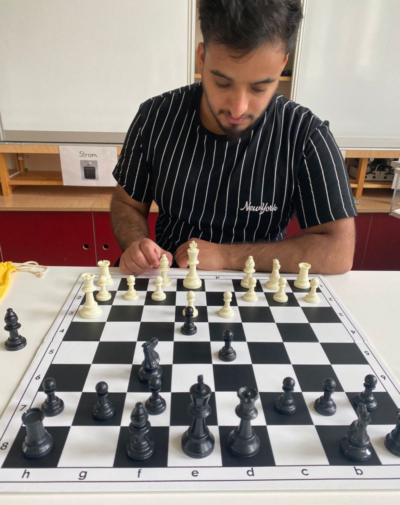 Ali bei seinem Ehrenamt als Schachtrainer in der Marie-Beschütz-Schule
