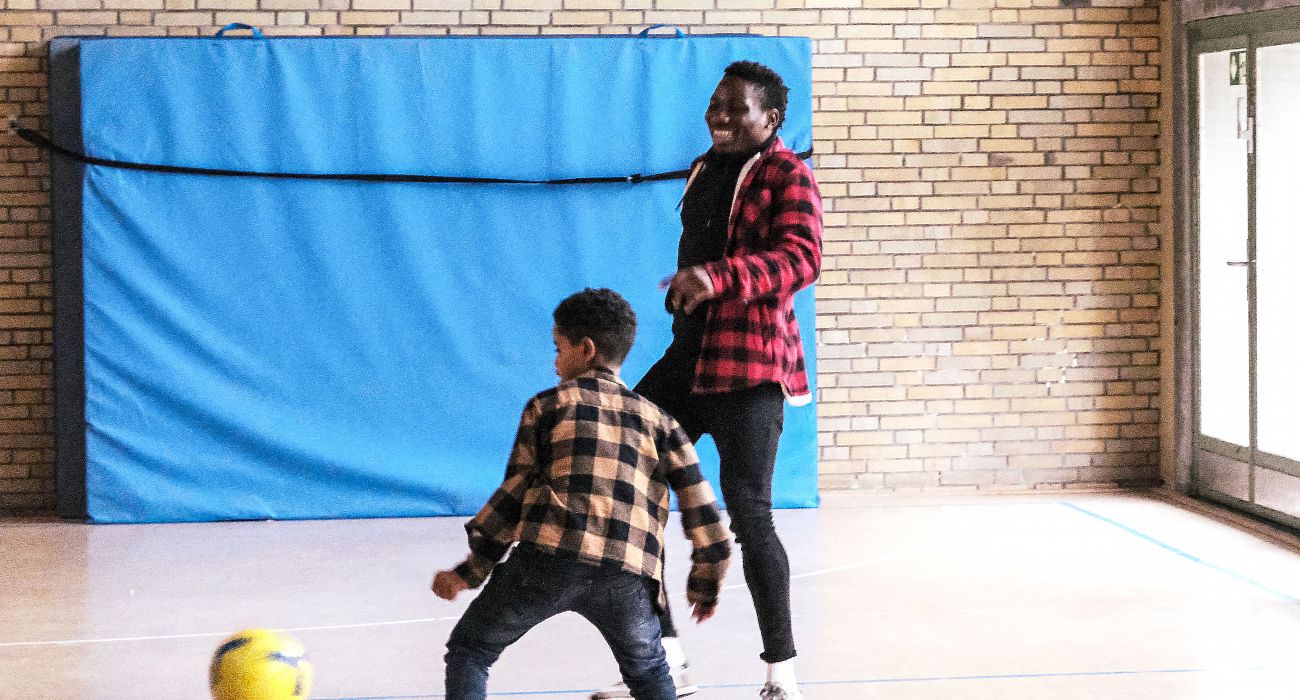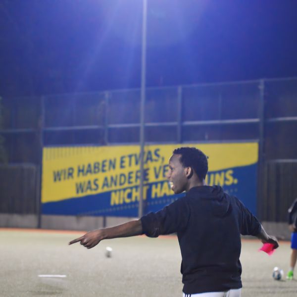Kanu trainiert ehrenamtlich eine Fußballgruppe beim Jugendmigrationsdienst von EvaMigra e.V. | © Anne de Wolff