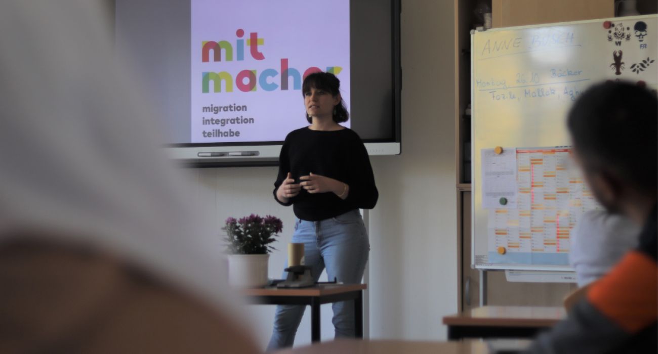 Anne informiert im Integrationskurs, was ein Ehrenamt bringt und wie Interessierte sich engagieren können | © MITmacher