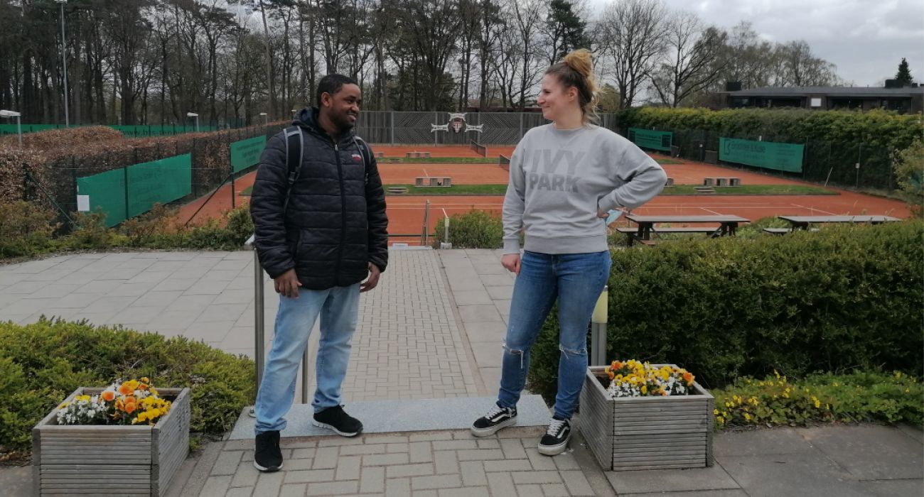 Begleitet von MITmacher-Vermittlerin lernt Gebriel Carla vom Harburger Turnerbund kennen | © MITmacher